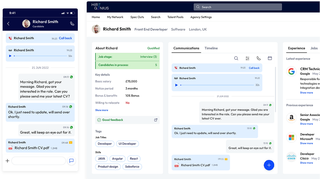 Dynamic ATS with recruitment process templates, a natively integrated & cutting-edge communication suite, CRM, intelligent search and the analytics required for the job - all at the recruiters' fingertips.